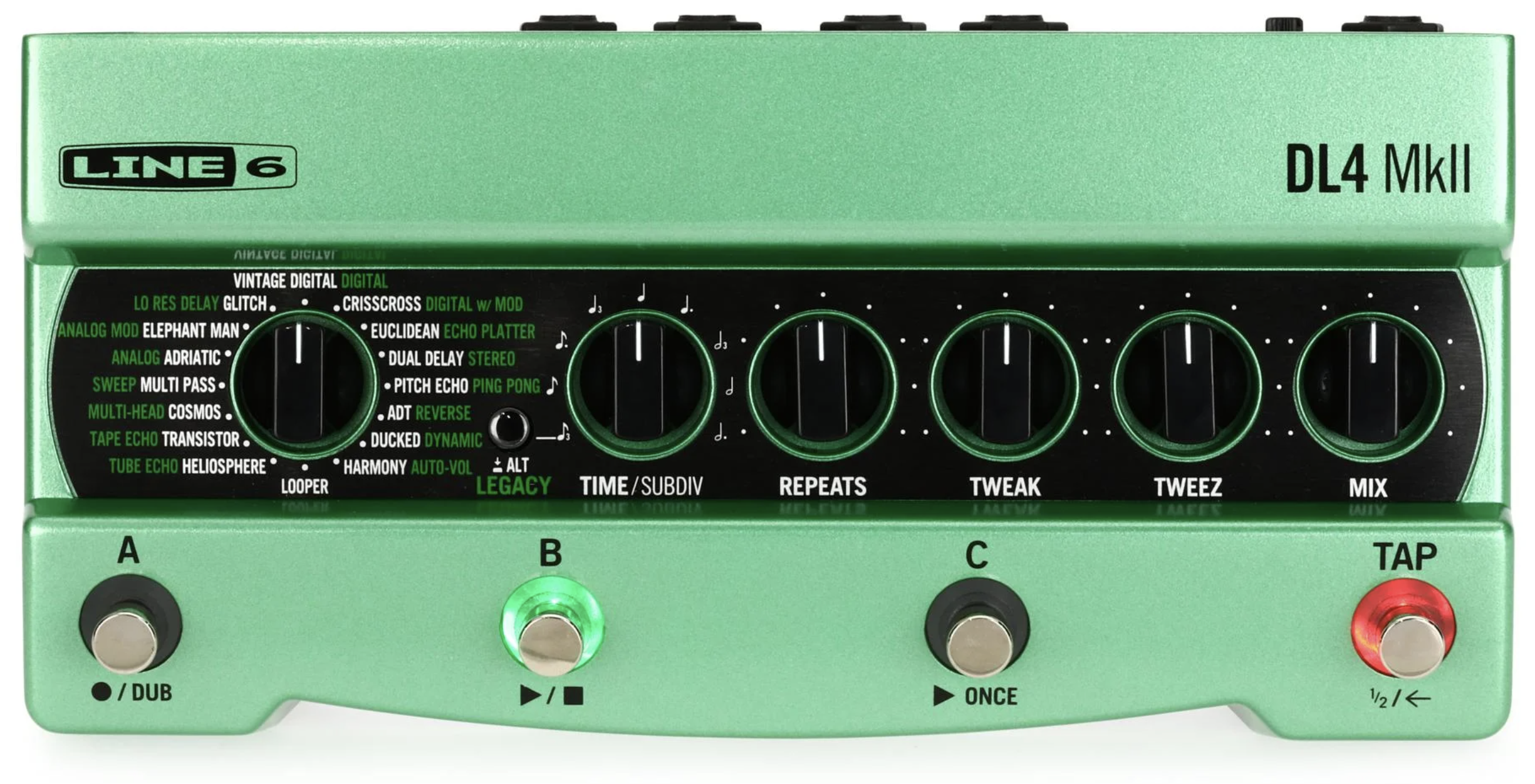 • A long repeat & minimal delay time can give you more of a spring reverb type sound; or a cool glitchy grab and hold type of effect.